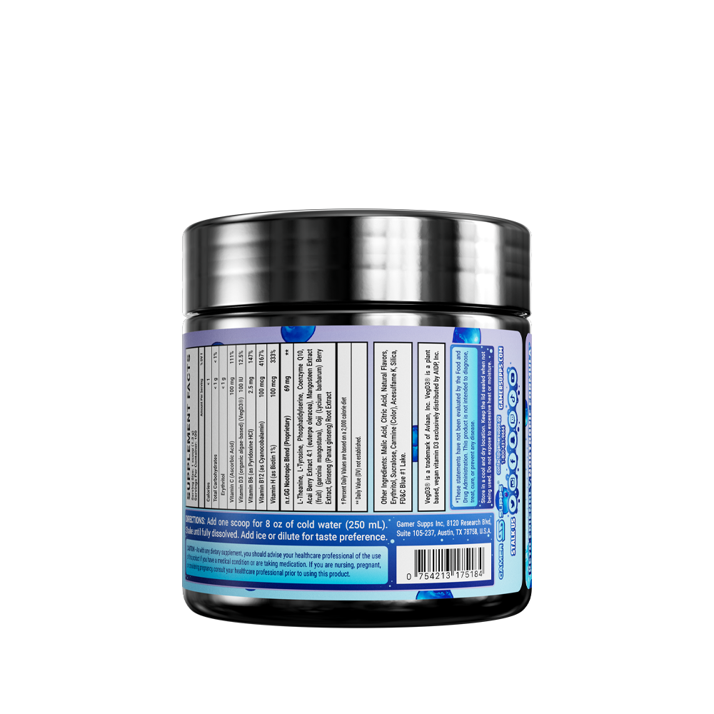 GG is the ultimate energy and focus formula designed to Level Up Your Gaming. The highest quality ingredients make up an energy formula that mixes completely and provides a healthier and more cost effective energy drink.